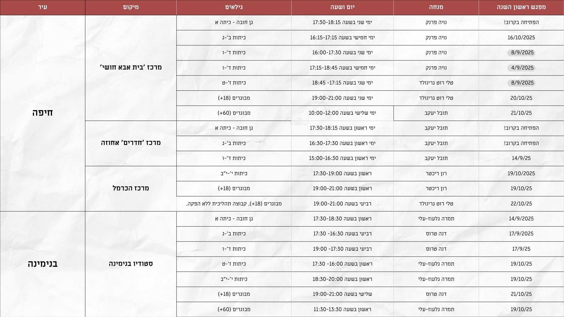 יש אצלנו לא מעט אחים / הורים וילדים שמשתתפים בקבוצות השונות (ואפילו אב ובת באותה קבוצת מבוגרים).